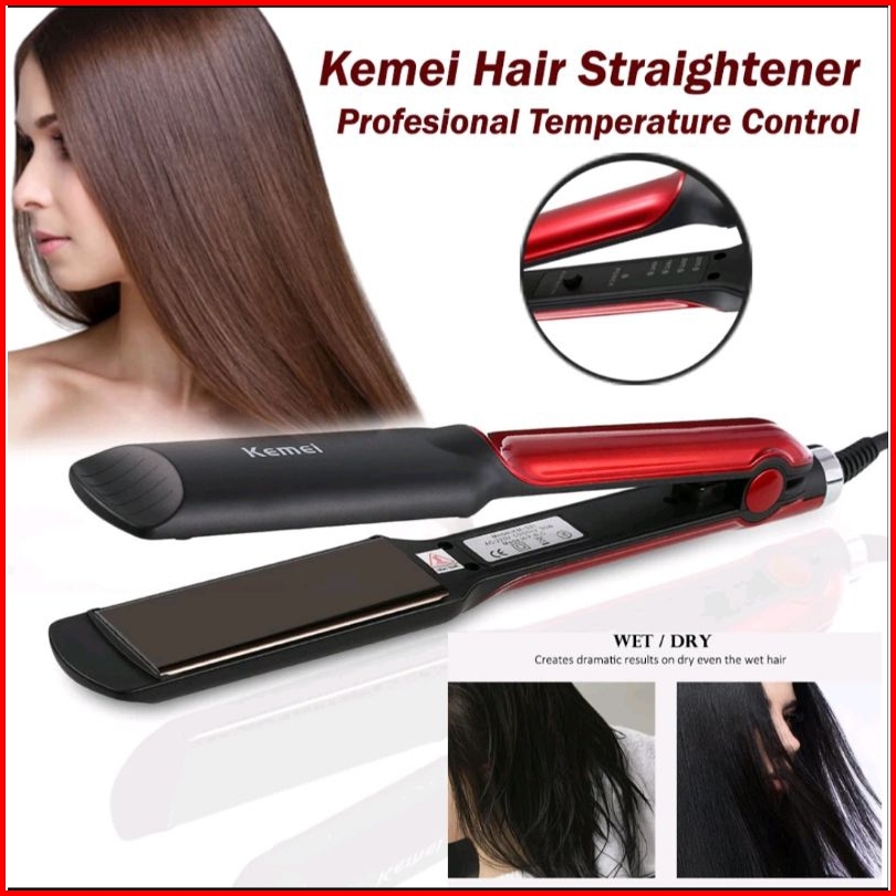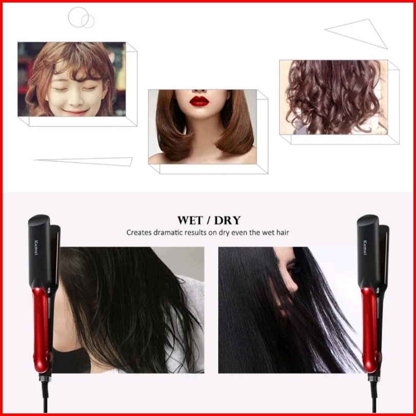 Catokan Rambut Kemei Hair Straightener Profesional Pelurus Keriting Rambut Curly Flat Iron Lebar