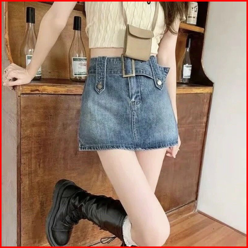S-4xl Rok Denim Pinggang Tinggi Spice Girls Denim Merah Muda Rok Garis