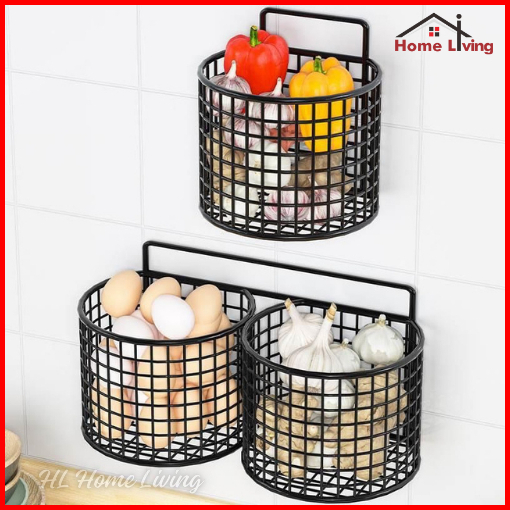 Hl Rak Keranjang Jaring Serba Guna Tempat Penyimpanan Bumbu Dapur Rak Kamar Mandi Tempel Dinding