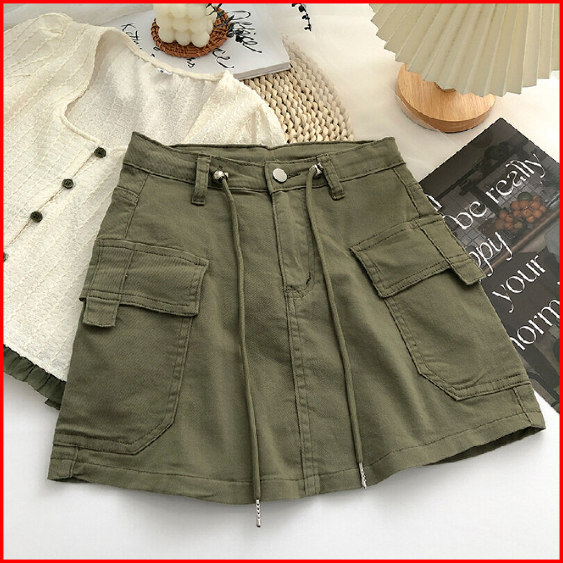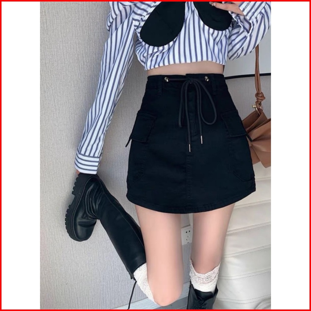 Rok Denim Wanita Korea Pinggang Tinggi Rok Jeans Wanita Jumbo Desain Tali