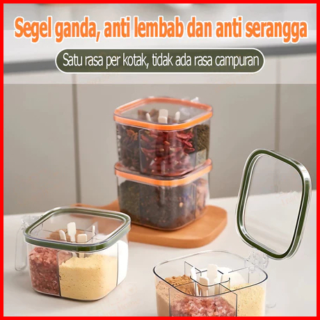 Wadah Bumbu Dapur 4 In 1 Aesthetic Kotak Plastik Penyimpanan Kedap Free Sendok 4 Sekat