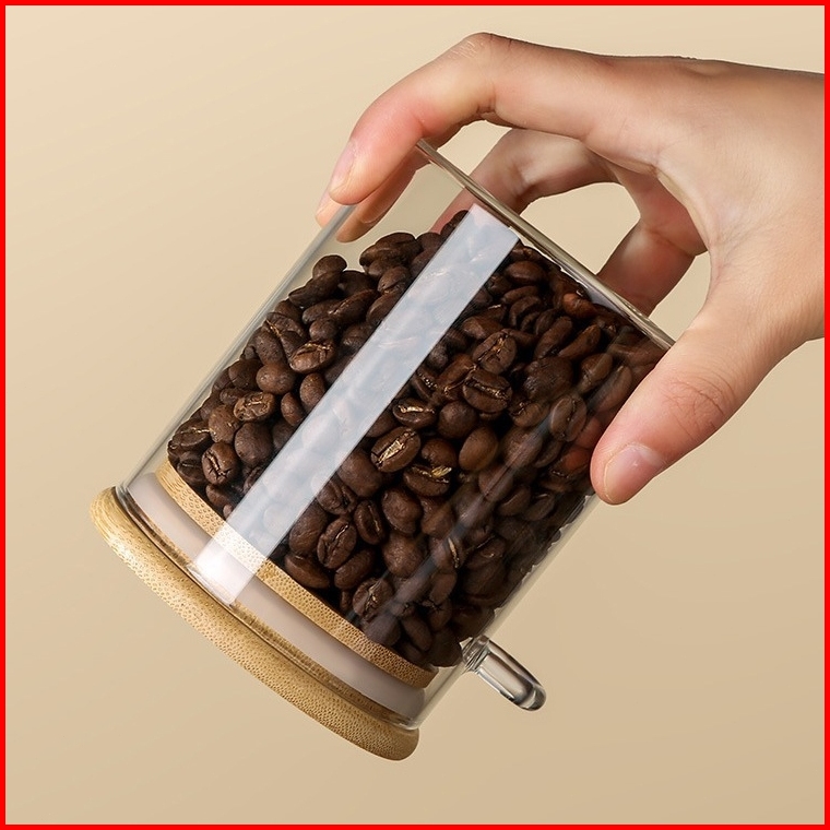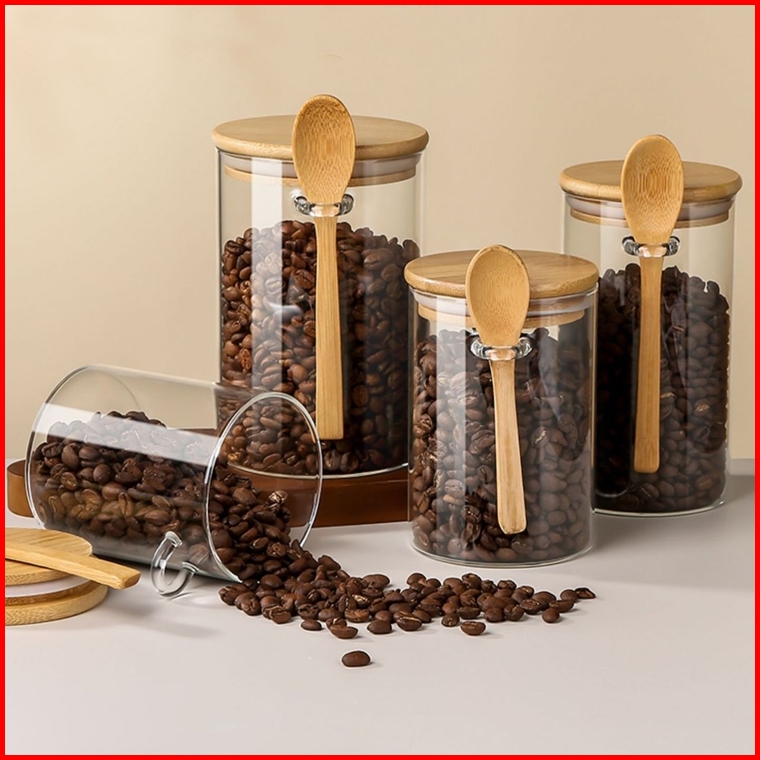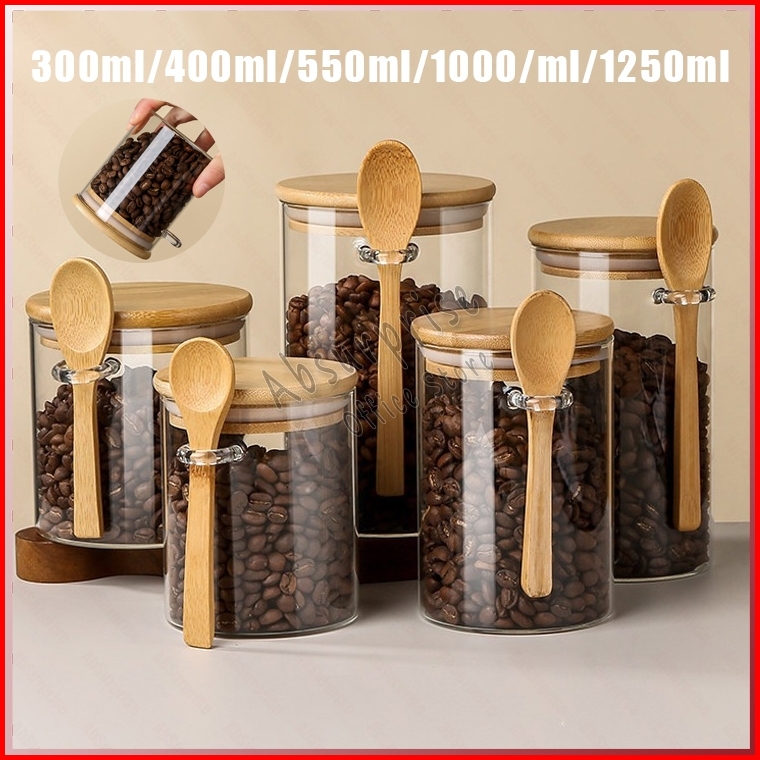 Toples Kaca Mini Bulat Tabung Storage Jars Transparan Plus Sendok Kayu