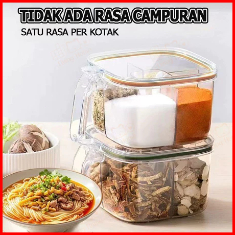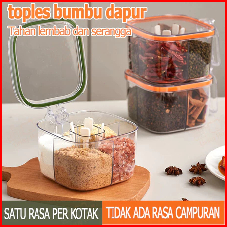 Wadah Bumbu Dapur 4 In 1 Aesthetic Kotak Plastik Penyimpanan Kedap Free Sendok 4 Sekat