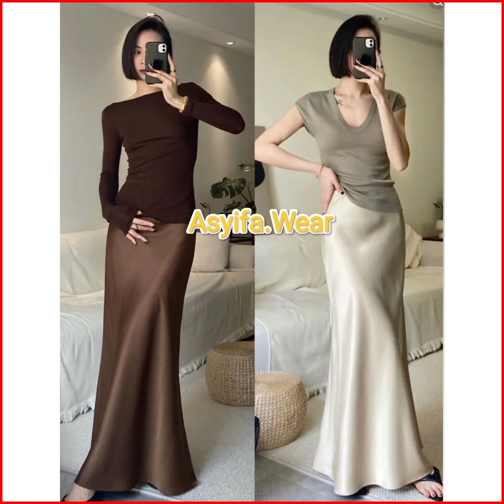 Asyifa Skirt Rok Satin Silk Premium-rok Skirt-satin Long Skirt-rok A Line Mermaid Skirt