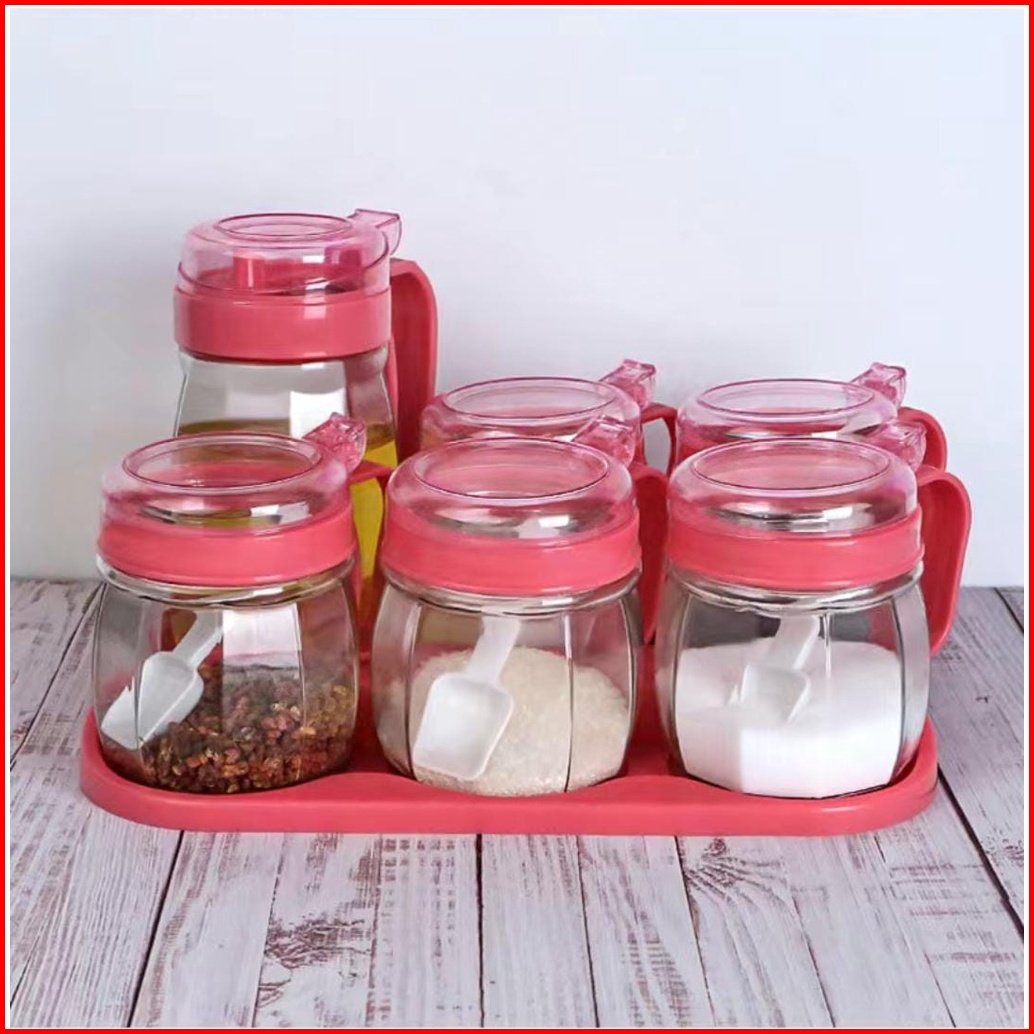 Botol Minyak Tempat Bumbu Set Isi 4 Pcs - Toples Garam Dapur Tempat Bumbu Oil Pot Set - Kitchen Jar Set 4