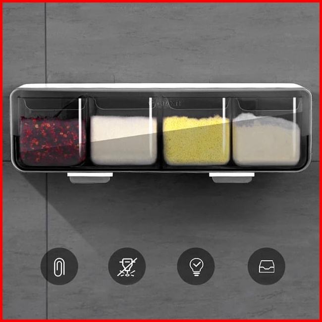 Qh223344 - Kotak Wadah Bumbu 4 Set Kotak Bumbu Dapur Tempel Dinding