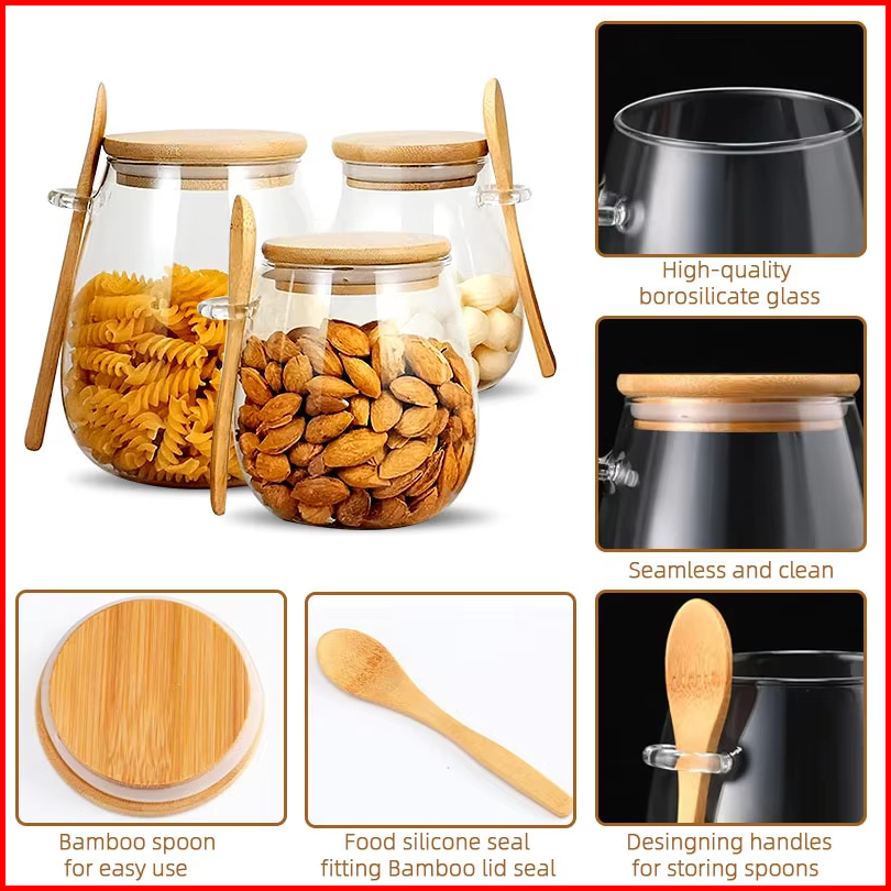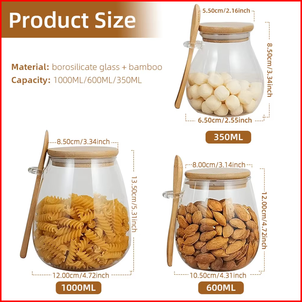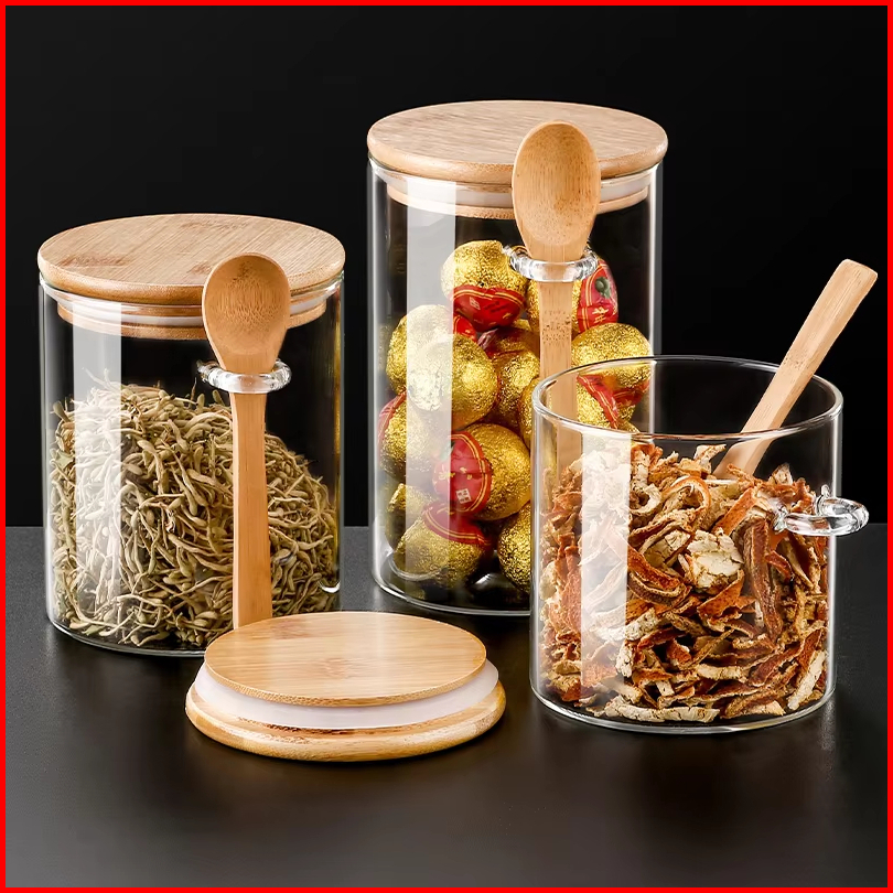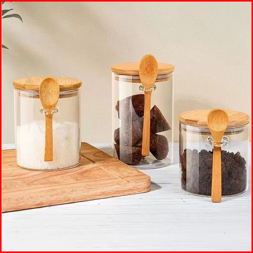 Toples Penyimpanan Wadah Bumbu Dapur Kedap Udara Serbaguna Garam Gula Mecin Desain Aesthetic Tutup Dan Sendok Kayu