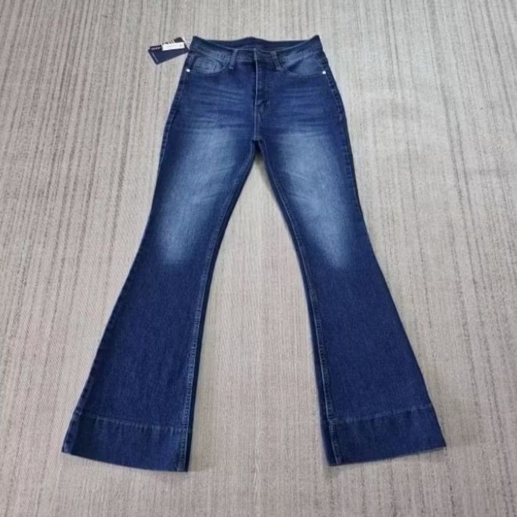 Jennie-HighWaist Cutbray Jeans Celana Flare Panjang Stretch Wanita Retro Vintage Lipat Bawah
