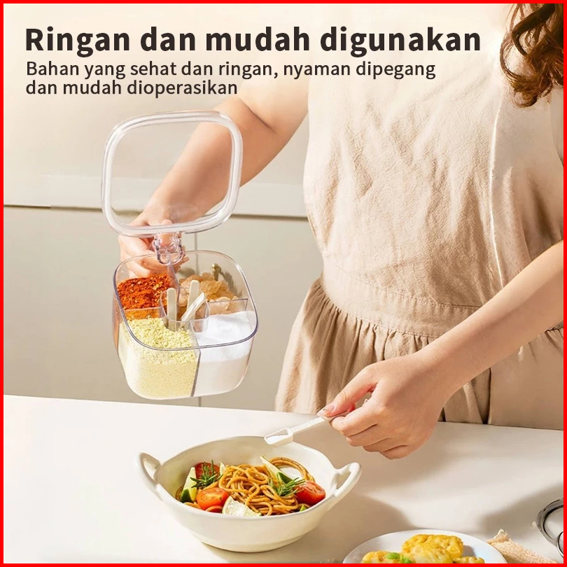 Wadah Bumbu Dapur 4 In 1 Aesthetic Kotak Plastik Penyimpanan Kedap Free Sendok 4 Sekat