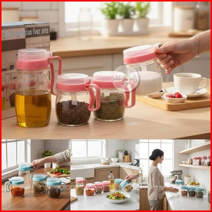 Bl 05 Kitchen Jar Set 4in1 Tempat Bumbu Dapur Minyak Wadah Bumbu Kaca