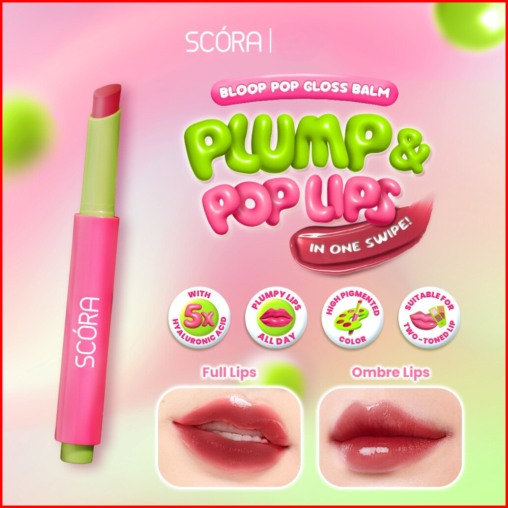New Scora Bloop Pop Gloss Balm Plump Pop Lips Bpom Pelembab Bibir Lip Plump Viral