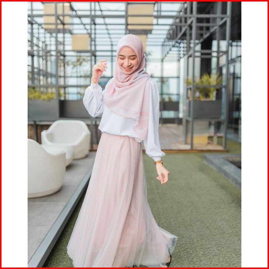 Rok Tutu Premium 3 Layer Panjang Wanita Dewasa - Tule Skirt Warna Pastel Tile Full Puring