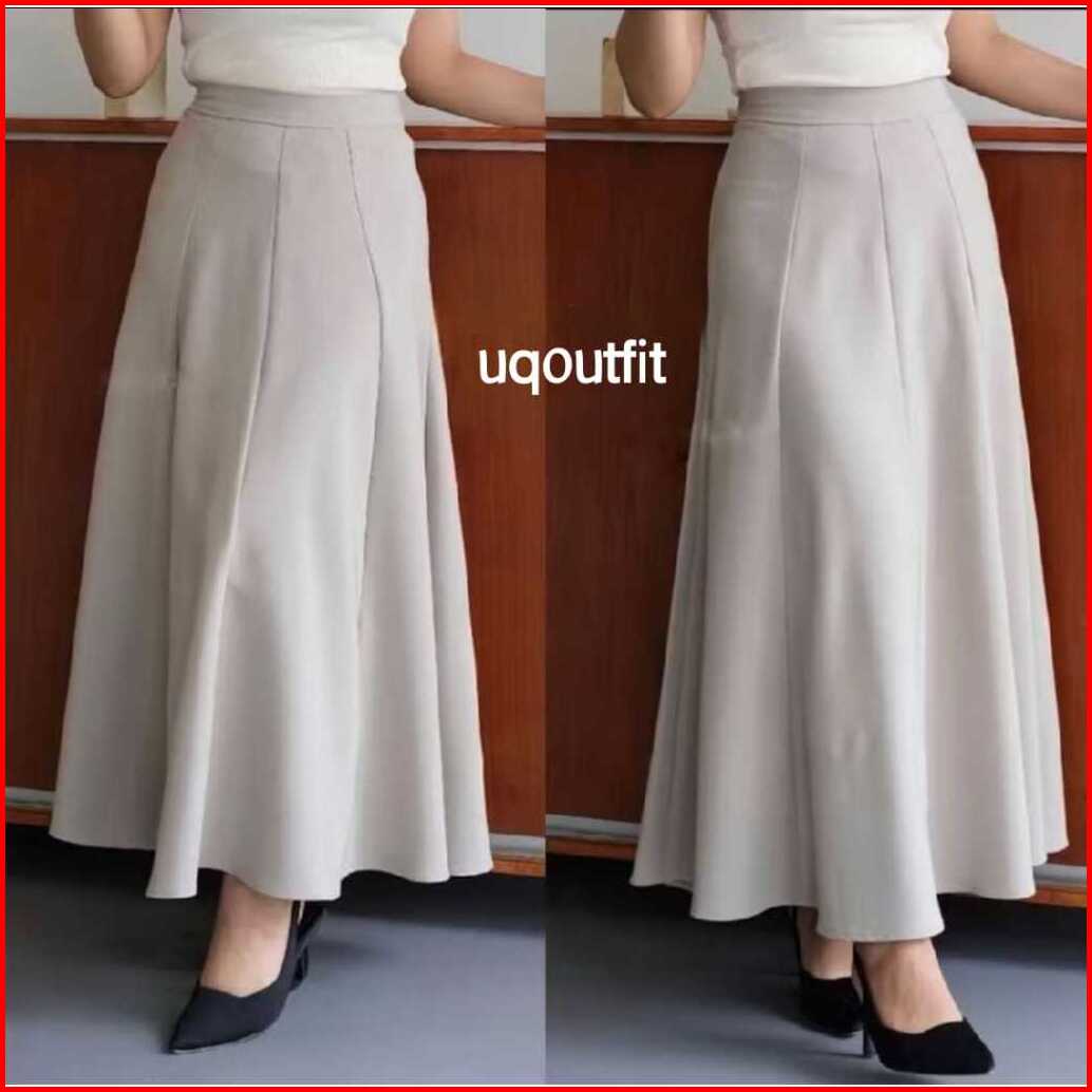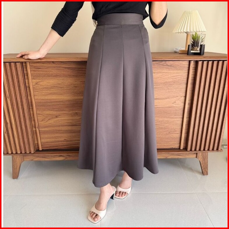 Haruka Skirt - Korean Loose Maxi Skirt Rok Wanita Anti Kusut Polyester - Rok Flare Wanita - Rok Basik Polos - Maxi Skirt