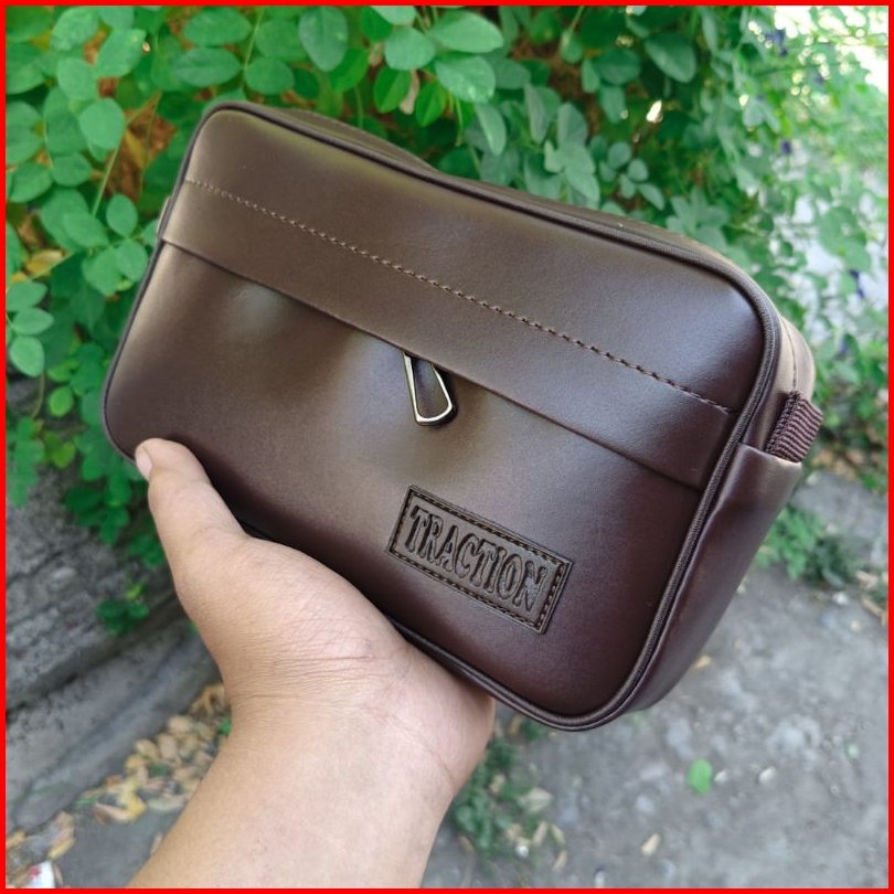 Traction Clutch Pria Kulit Sintetis Medium Handbag Pria Original Merk Traction Tas Tangan Selempang Pria