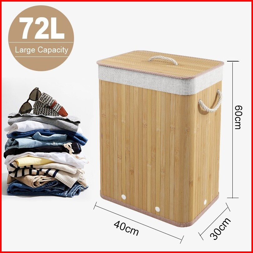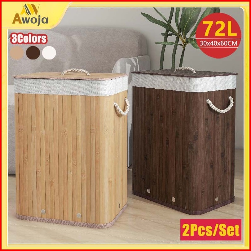 2pcs Keranjang Baju Kotor 72l Keranjang Laundry Rotan Kotor Bag Basket Dengan Tutup Tas Cucian Lipat Pakaian Kotor Tempa