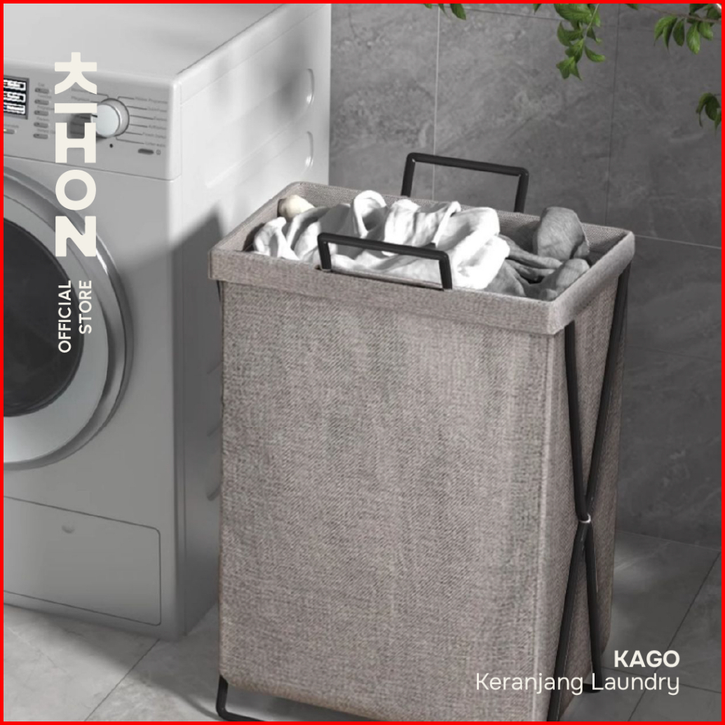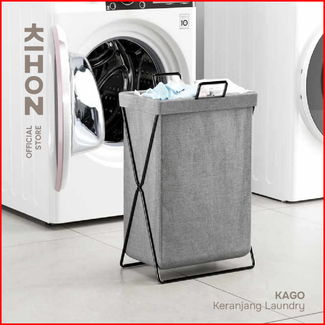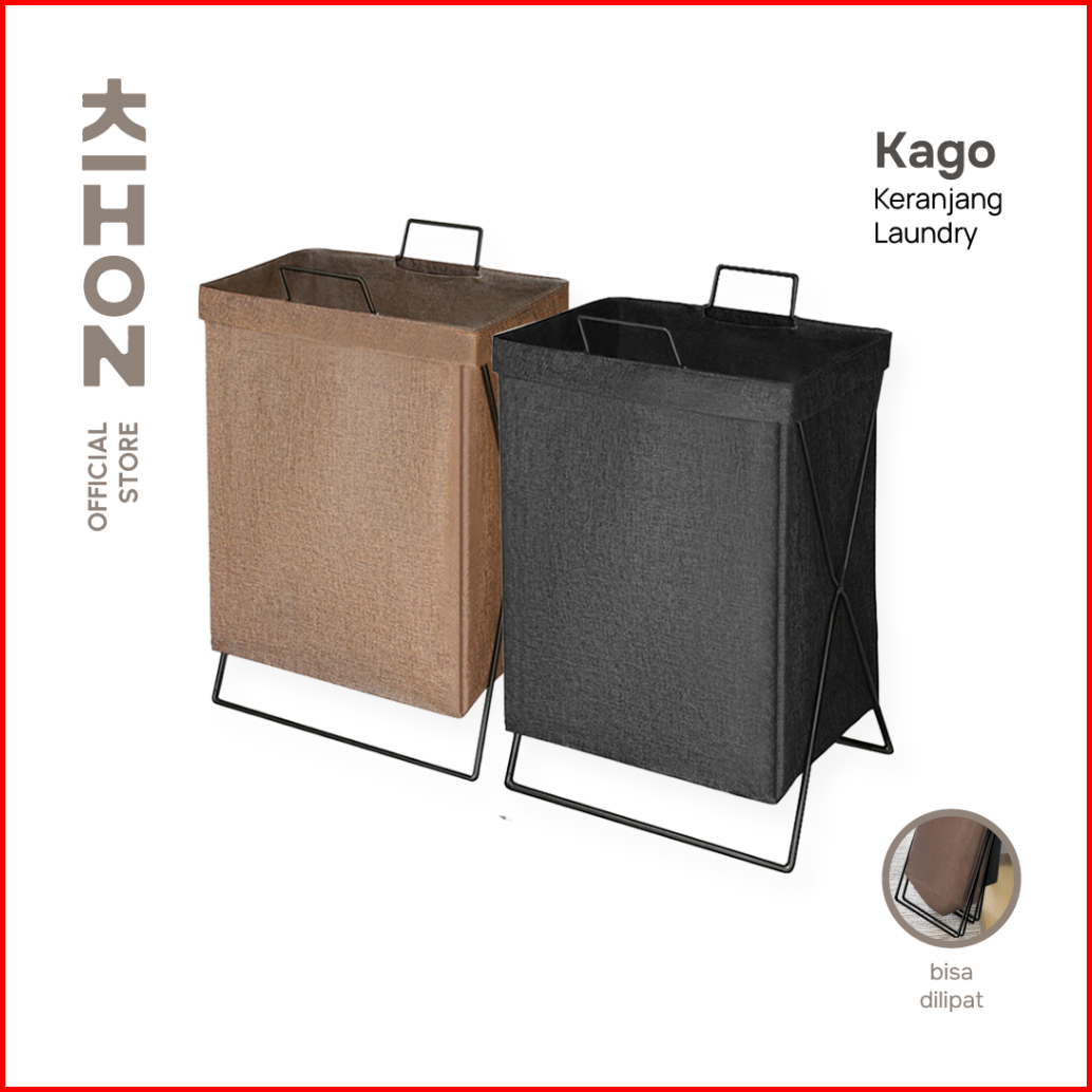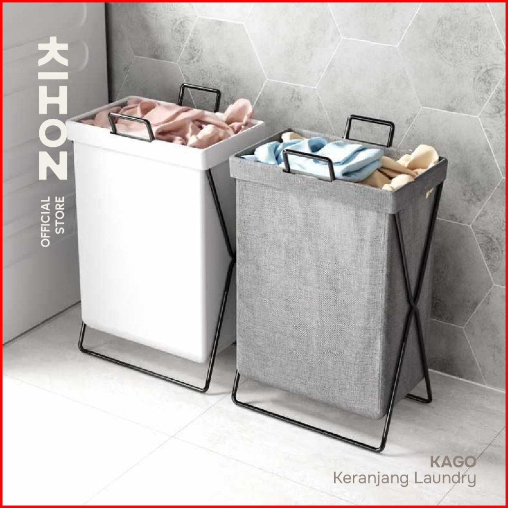 Kihon Kago Keranjang Laundry Lipat Minimalis Dapat Dilipat Dilengkapi Rangka Besi Penyangga