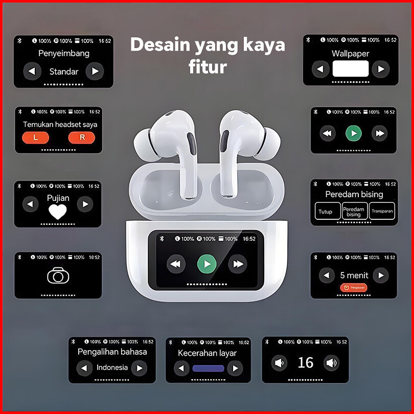 Manu A9 Pro Anc Enc Tws Earphone True Wireless Bluetooth 5.4 Smart Touch Screen Active Noise Reduction Headphone Hifi St