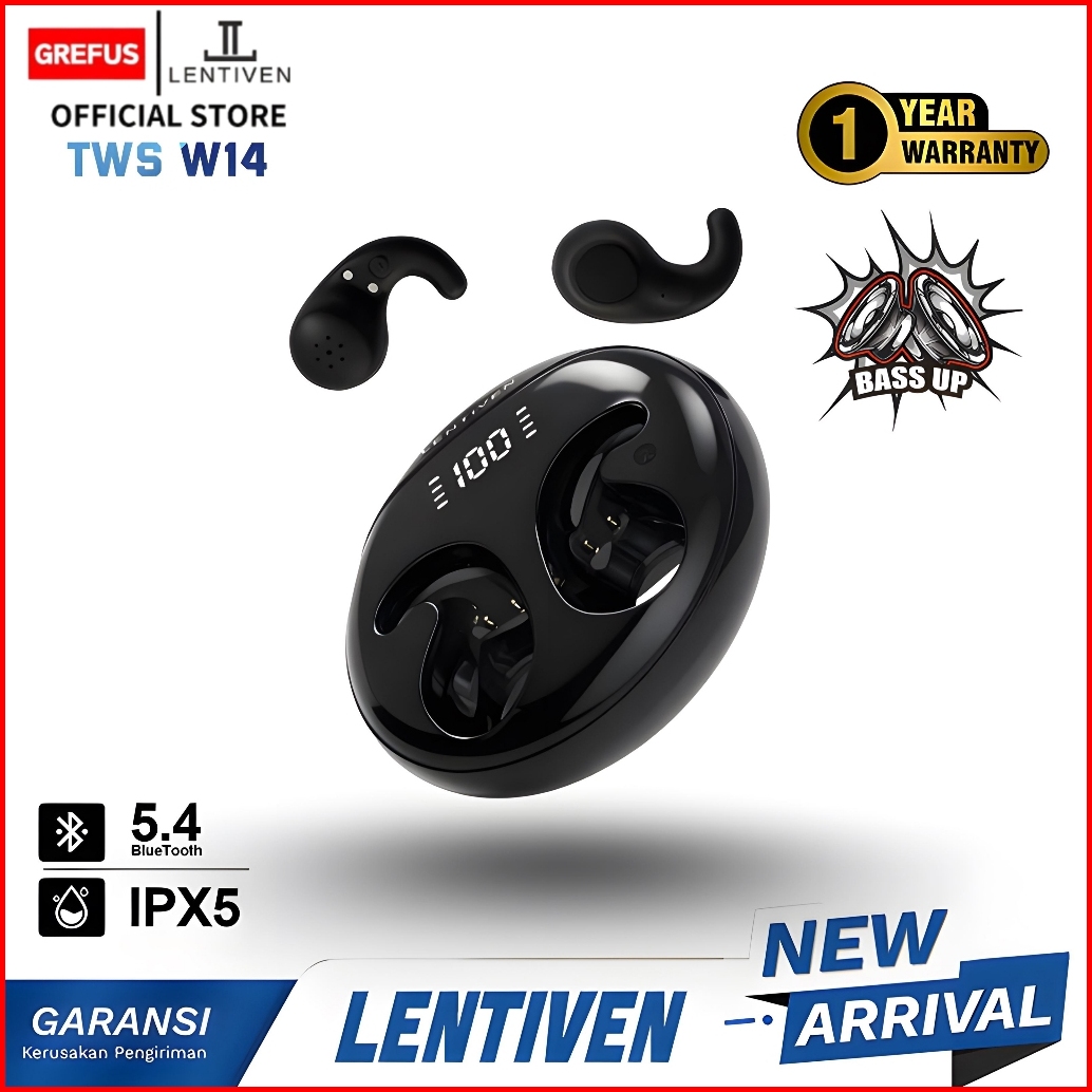 Grefus Lentiven Headset Earbuds Tws Wireless Earphone Bluetooth 5.4 Hi-res Audio Ipx5 Garansi 1 Tahun W14