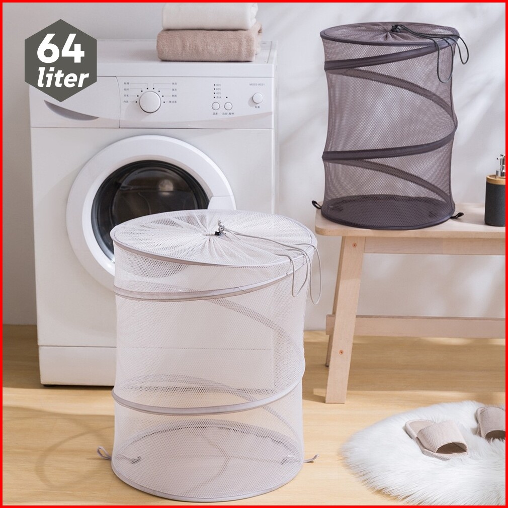 64liter Keranjang Laundry Keranjang Baju Kotor Lipat Tempat Mesh Storage Tempat Loundry Lipat Tebal Keranjang Baju