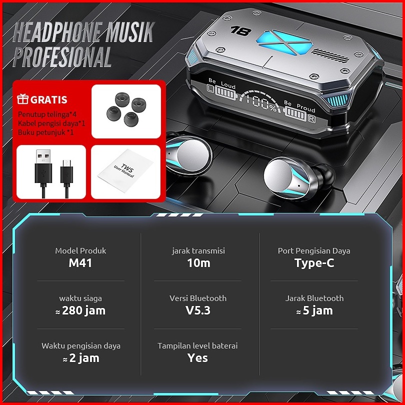 Tws M41 Wireless Bluetooth Headset Low Latency Gaming Headset 4500mah Rechargeable Power Supply Super Bass Bluetooth 5.3