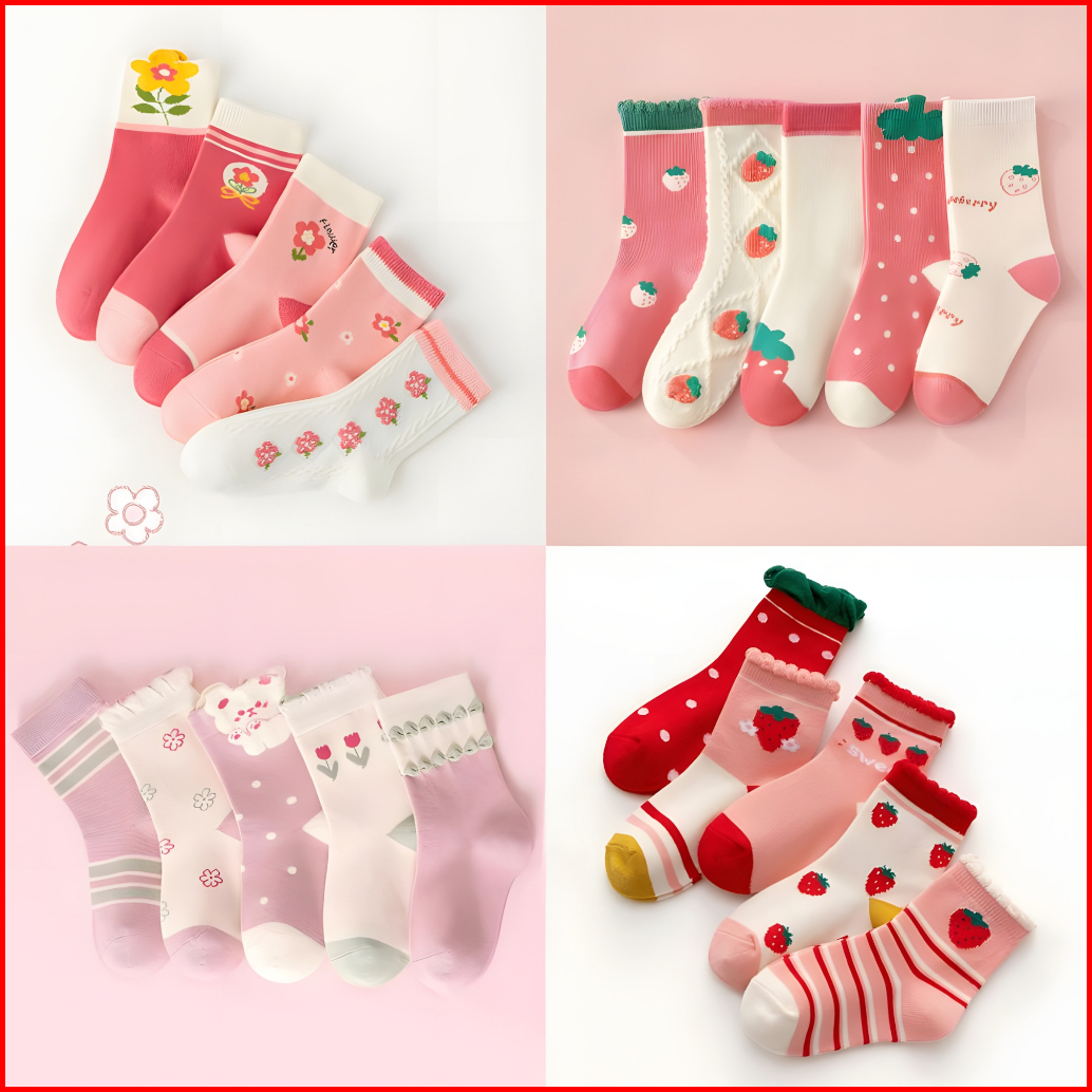 Benvolen Kaos Kaki Anak Perempuan Isi 5 Pasang 1-8 Tahun Katun Premium