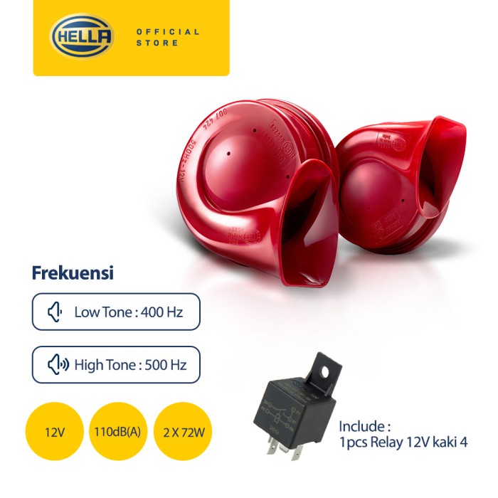 Klakson Mobil HELLA Red Twin Tone 12V Include Relay - Klakson Motor