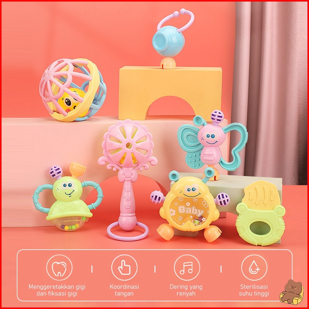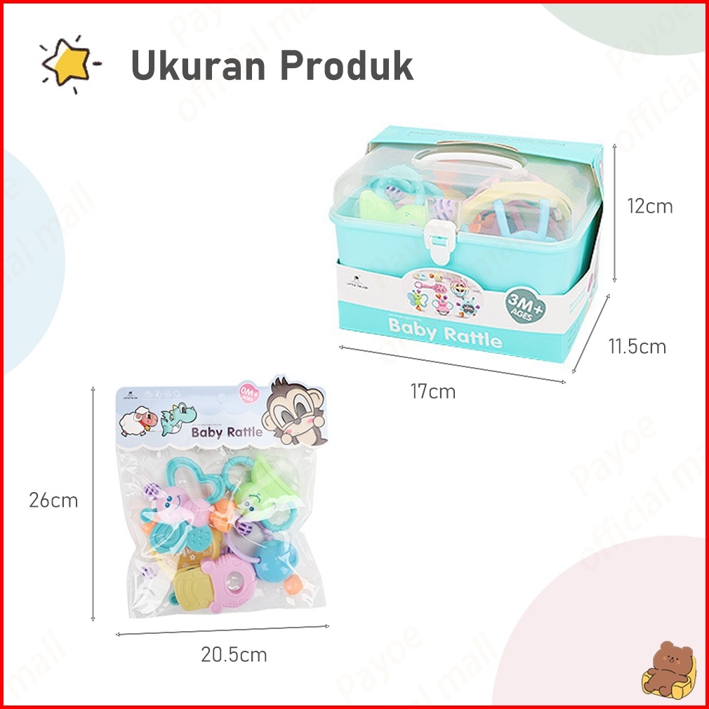 Payoe Mainan Rattle Bayi Teether Bayi Set Gigitan Bayi Bpa Free Rattle Stick