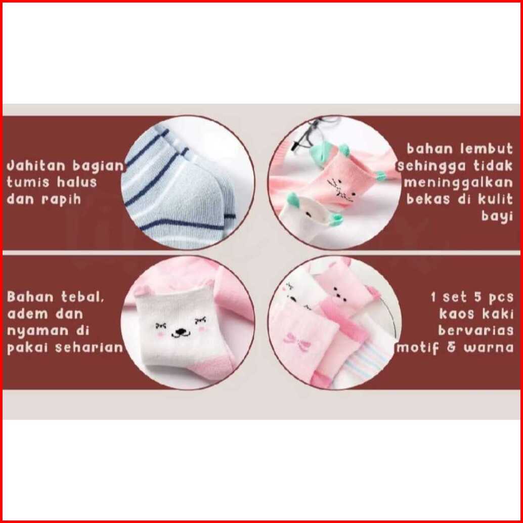 Dittokids Isi 5 Pasang Kaos Kaki Katun Set Isi 5 Pasang Motif Lucu Bayi Anak Baby Socks Premium