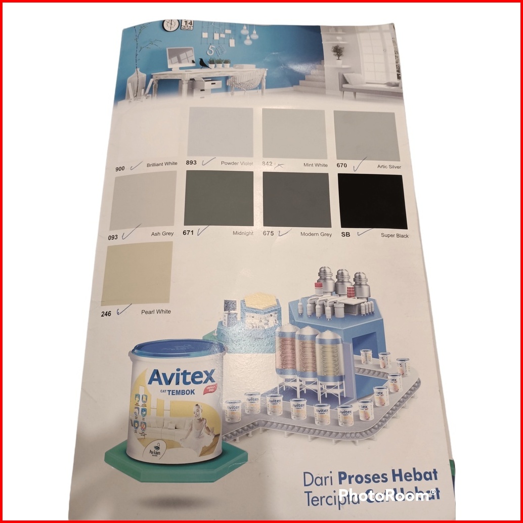 INDACO ENVI PUTIH A, SW super white, SB super black, 610 earth yellow, 620 apple green, 630 tangerine, 650 sweet pink, 660 lilac frost, 670 artic siver, 671 midnight, 675 modern grey, 680 safari, 700 azure blue, 710 moon glow, 720 CANDY PINK, 725 CHERRY PINK, 730 ORANGE JUICE, 731 sunshine, 735 BRIGHT RED, 740 lemon yellow, 745 FIESTA, 750 SUNNY YELLOW, 755 golden yellow, 765 sun flower, 770 EMERALD, 771 kiwi gold, 831 light cream, 896 MW, 901 MARIGOLD, AVITEX GOLD SW, 902 SUPRA WHITE, 903 BRILLIANT WHITE, 752 CHAMPAGNE, 904 PINKY, 905 M WHITE, 906 CITRUS GROVE, AVITEX GOLD 755, AVITEX GOLD 720, 602 SKYWAY, 907 MISTY, AVITEX GOLD 765, AVITEX GOLD 725, 601 BLUE ROMANCE, AVITEX GOLD 710, AVITEX GOLD 745, AVITEX GOLD 735, AVITEX GOLD 700, AVITEX GOLD 712, 908 MOONSTONE, 909 SWAN WING, 910 LILAC WHITE, 911 RETICENT WHITE, 912 DREAMLAND, 913 PEACHY, 914 CREAMY, AVITEX GOLD 670, AVITEX GOLD 620, AVITEX GOLD 831, 915 TERATAI, 916 DOLPHIN GREY, AVITEX GOLD 770, AVITEX GOLD 040, 917 SANDSTONE, 918 MINIMALIS GREY, AVITEX GOLD 771, AVITEX GOLD 680, 919 GRANITE GREY, AVITEX GOLD SB