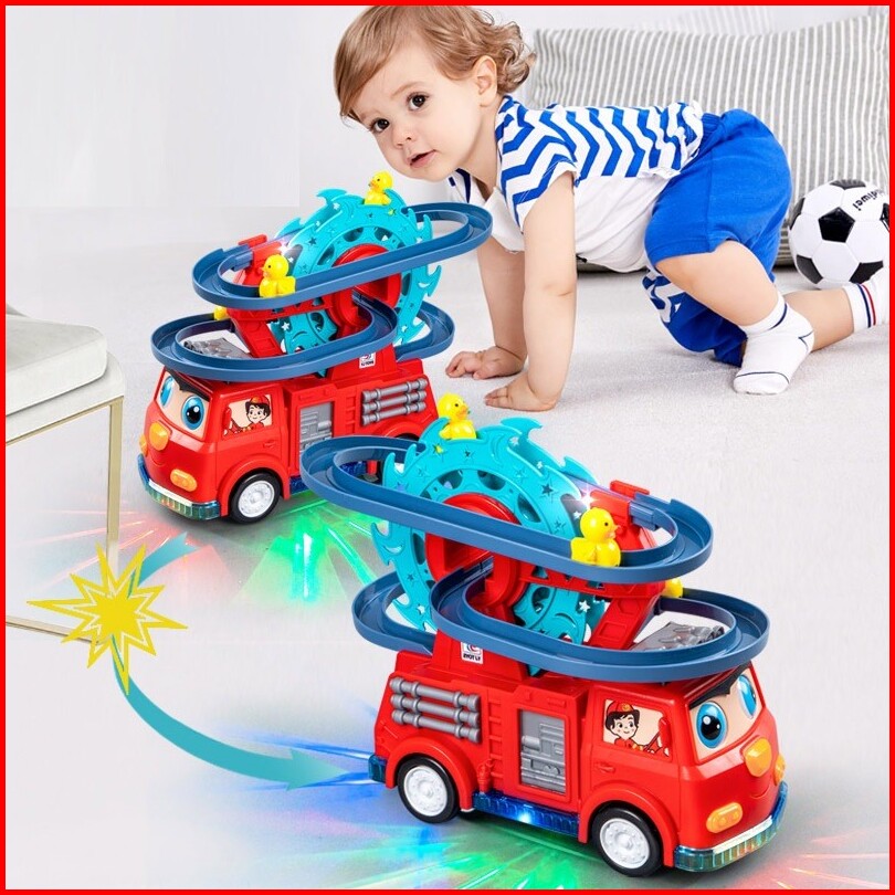 Mainan Edukasi Anak Bayi Track Seluncur Lampu Musik Mobil Duck Dino Slide Toy Perosotan Putar Bebek