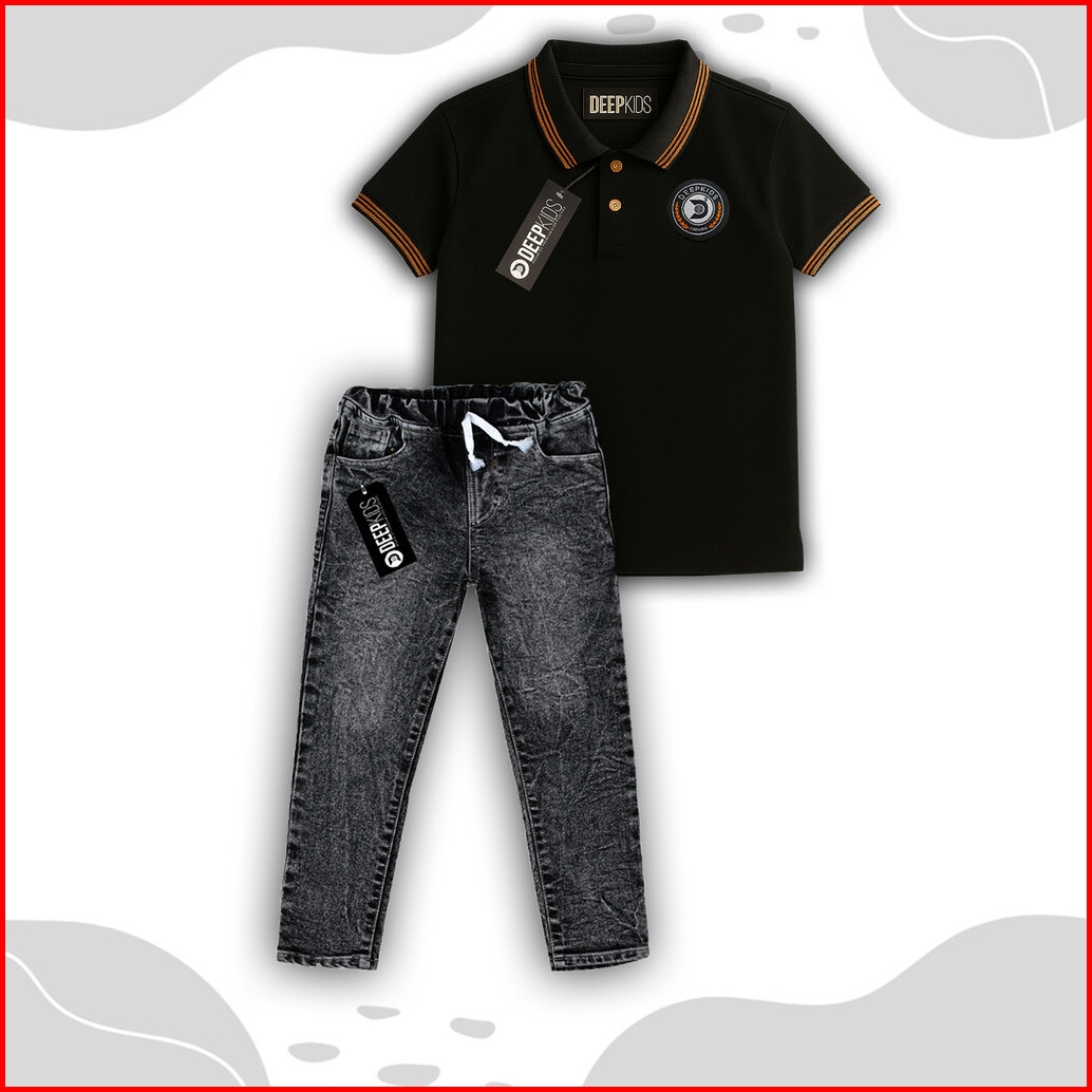 Deepkids Setelan Anak Laki Laki Distro Premium Kaos Kerah Polo Celana Jeans Panjang Usia 1 2 3 4 5 6 7 8 9 10 11 12 Tahu