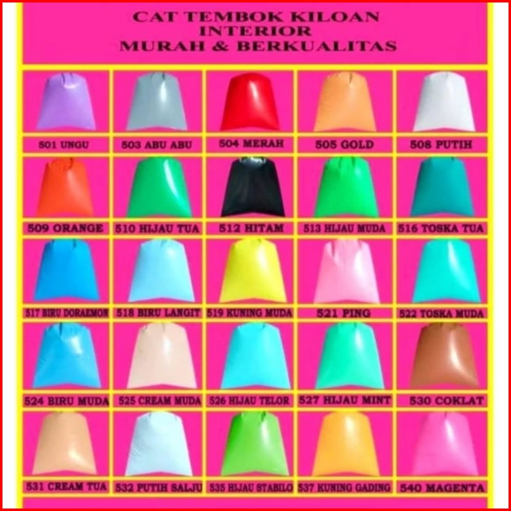 501 ungu tua, 503 Abu-abu, 504 merah, 505 cream tua, 508 putih susu, 509 orange, 510 Hijau tua, 512 Hitam, 513 hijau stabilo, 516 Hijau toska tua, 517 biru Doraemon, 518 biru telor asin, 519 kuning muda, 521 pink, 522 hijau tosca muda, 524 buru langit, 525 cream muda, 527 hijau muda, 530 coklat, 531 cream tua, 532 putih salju, 535 hijau bolupandan, 537 kuning kunyit, 540 pink magenta