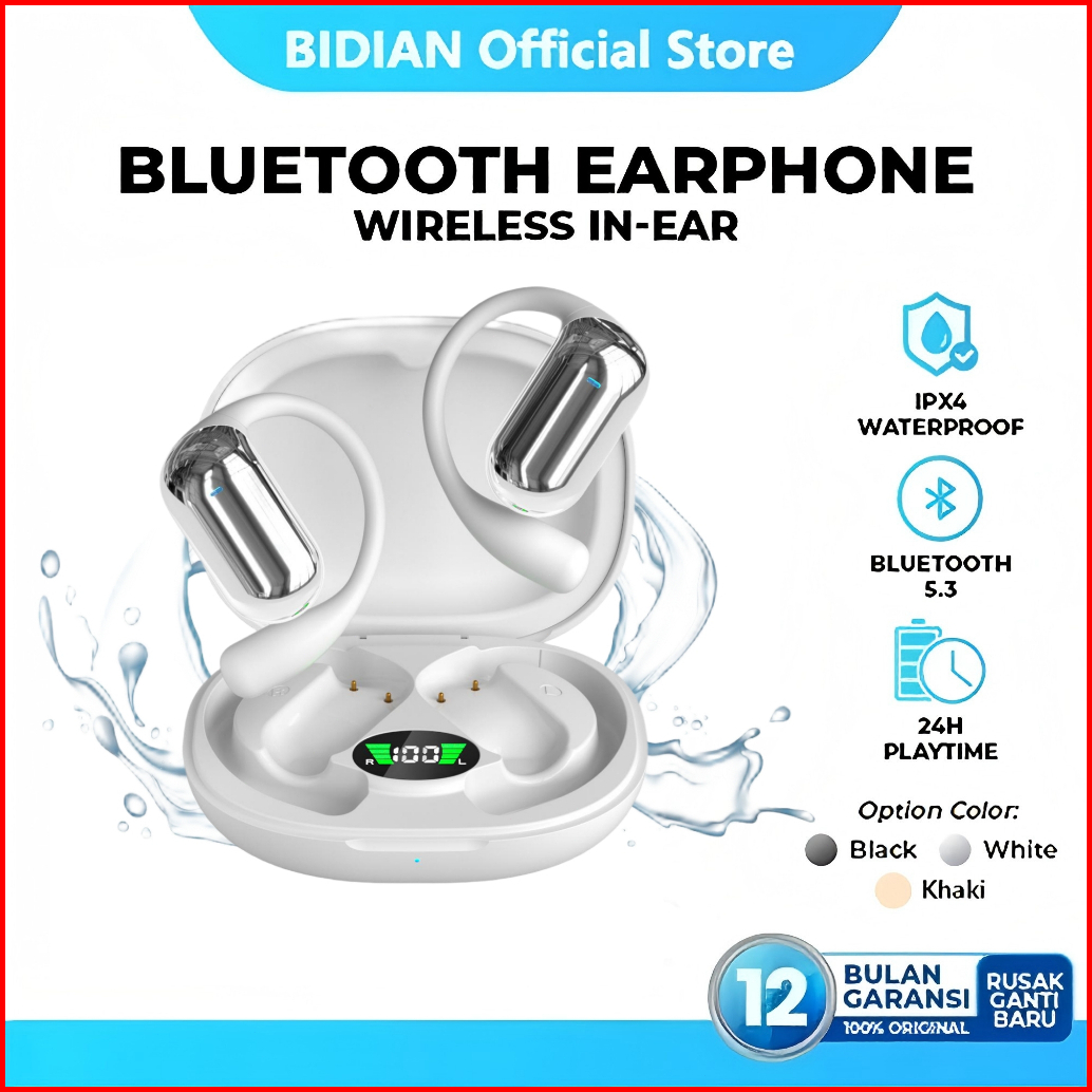 Bidian Tws Sport Q16 Headset Earphone Bluetooth 5.3 Wireless In-ear Hifi Noise Canceling Waterproof Earbuds Daya Baterai