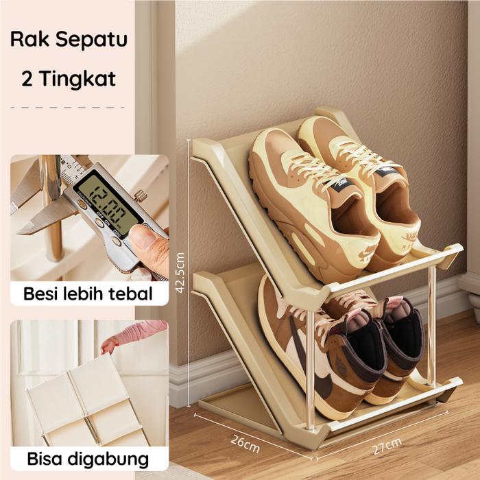 Rak Susun Sepatu Plastik Tempat Penyimpanan Shoes Rack Sendal Rak Tingkat Portable HRS108 - 2T Cream