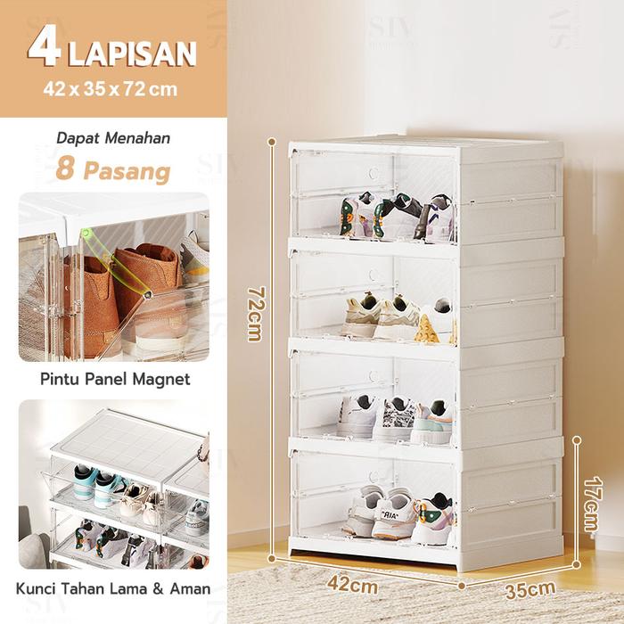 【 Tidak Diperlukan Instalasi】SIV Rak Sepatu Lipat Kotak Sepatu Lipat Kotak Sepatu Transparan - 4 tingkat