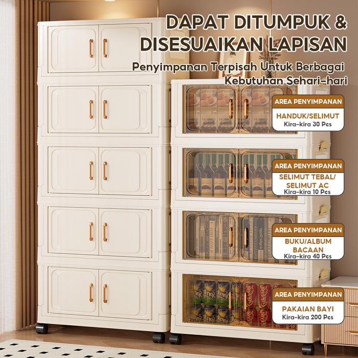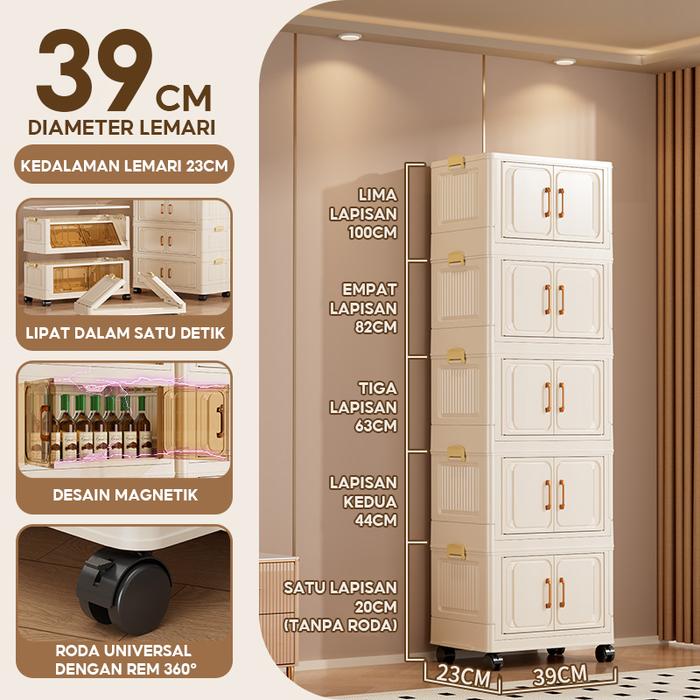 【Free Gift】cubbie Rak Tas/Sepatu Lipat 5 Tingkat Lemari Plastik Baju Serbaguna / Wardrobe Storage 39cm - Putih 3 lapisan