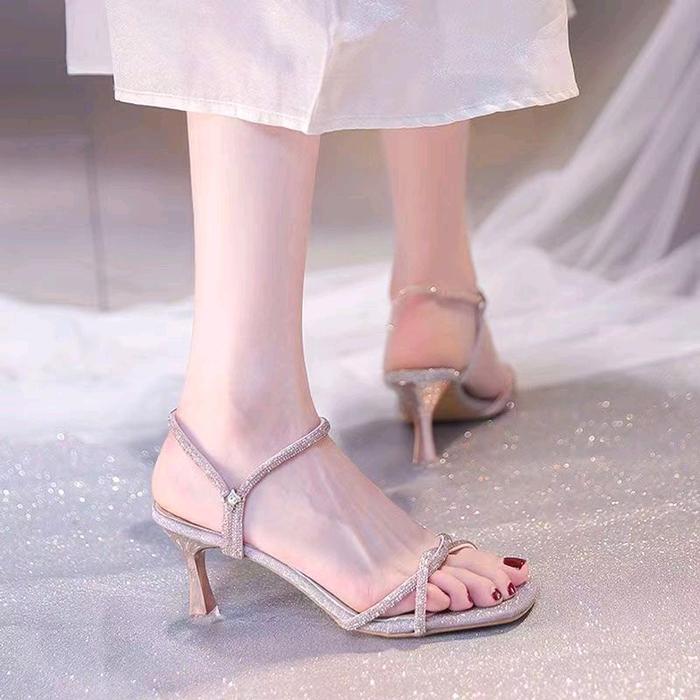 Kaylan - sandal heels wanita 5CM high heels wanita terbaru sandal wanita hak kaca tali permata