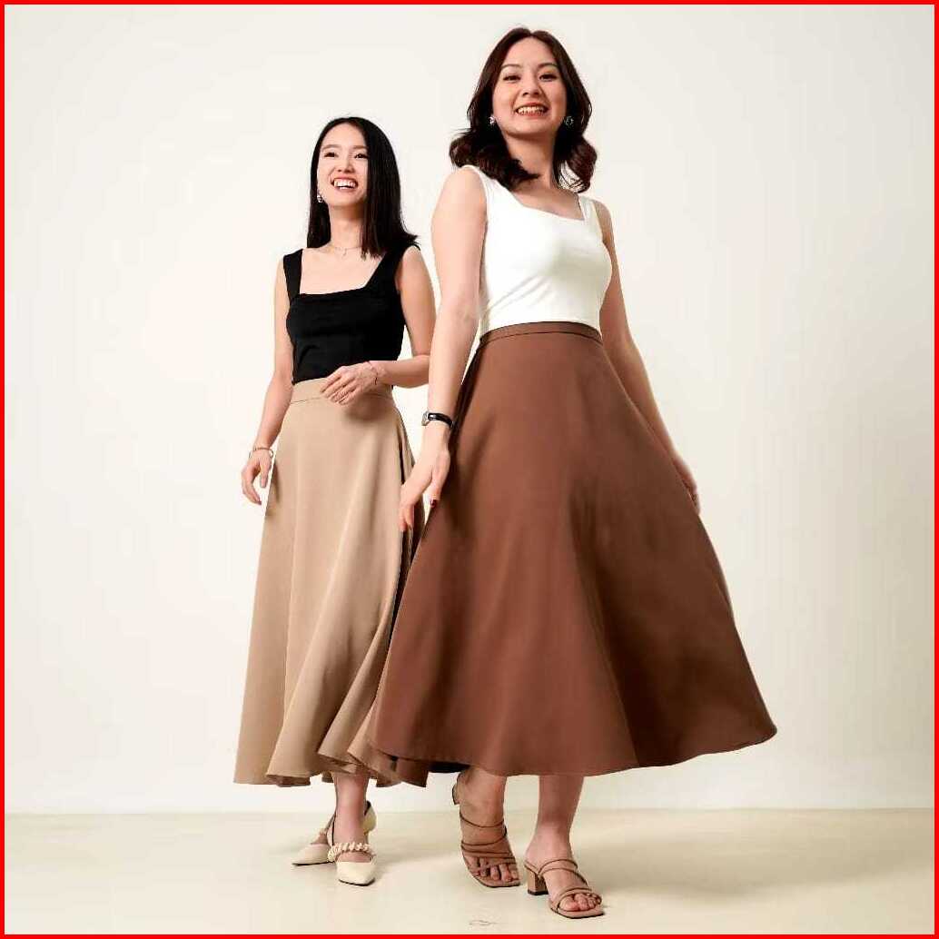 Fuji Maxi Skirt Korean Style Flared Formal Rok Kerja Kuliah Wanita Rok Wanita Korean Style Formal Casual