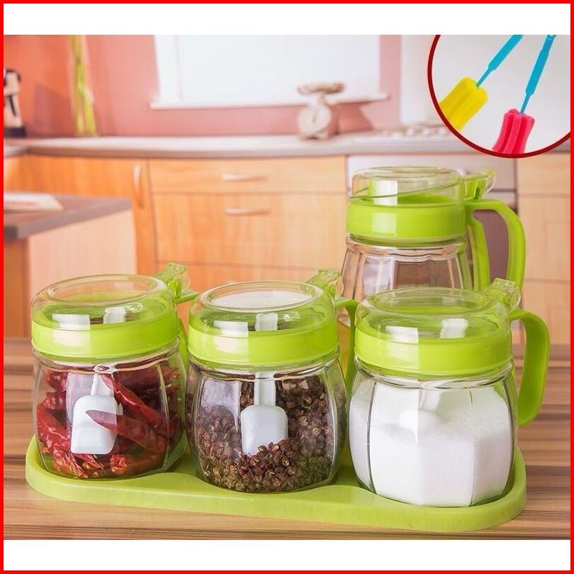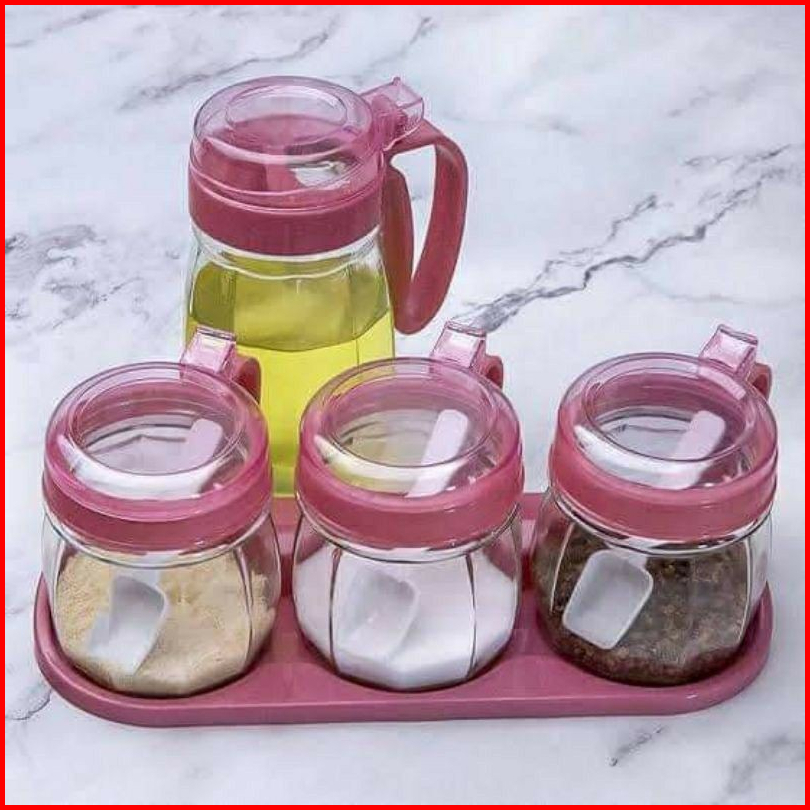 Botol Minyak Tempat Bumbu Set Isi 4 Pcs - Toples Garam Dapur Tempat Bumbu Oil Pot Set - Kitchen Jar Set 4