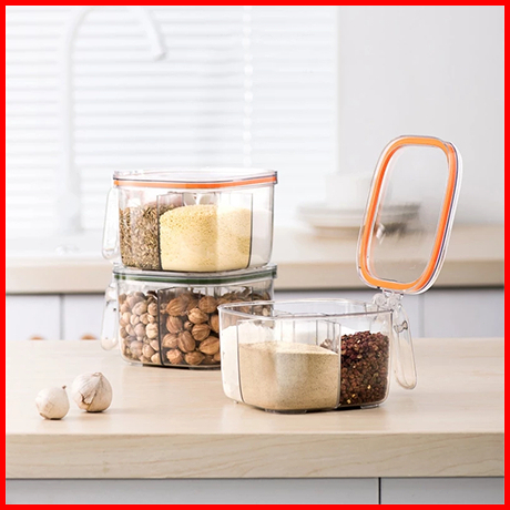 Wadah Bumbu Dapur 4 In 1 Aesthetic Kotak Plastik Penyimpanan Kedap Free Sendok 4 Sekat
