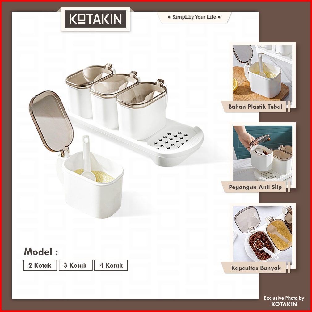 Kotakin Tempat Kotak Bumbu Dapur Set 4 In 1 Penyimpanan Wadah Garam Gula Merica Bubuk Seasoning Box
