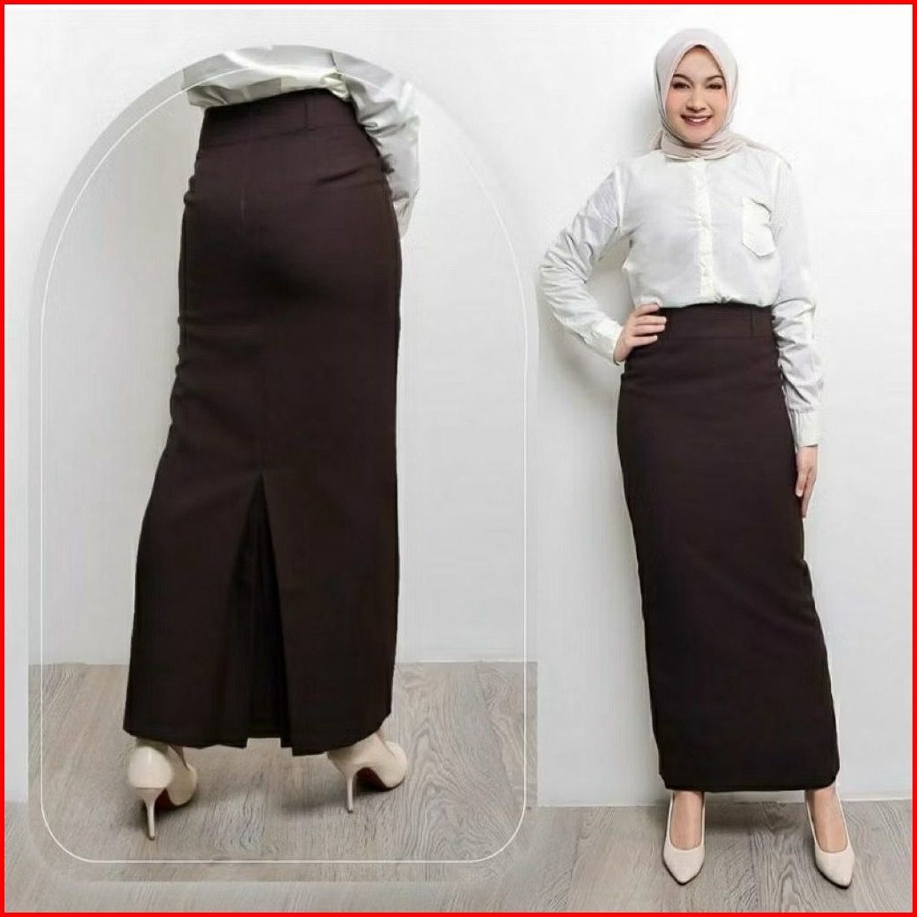 Rok Kerja Panjang Wanita Rok Span Rempel Belakang Size S-l