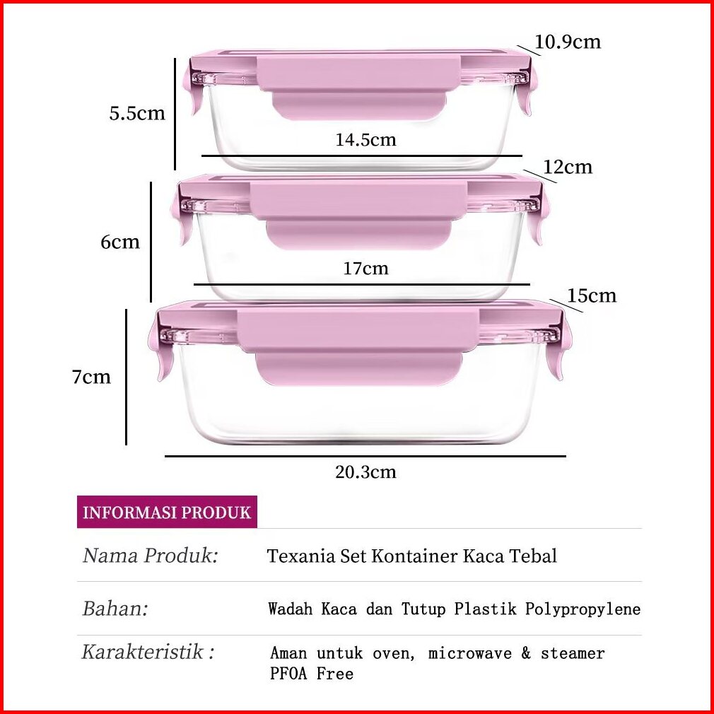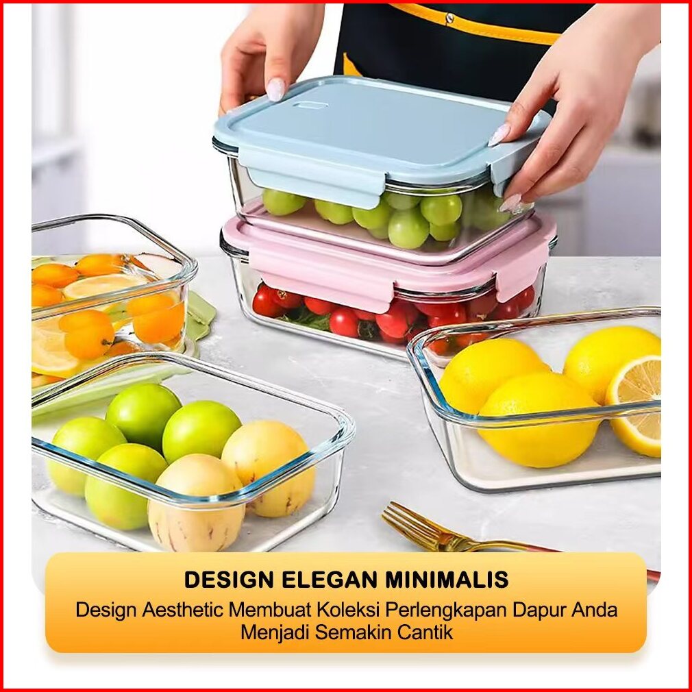 Tex Set Food Container - Foodbox Kaca Wadah Makanan - Wadah Sayuran Wadah Buah Buahan - Bisa Freezer Dan Oven Microwave