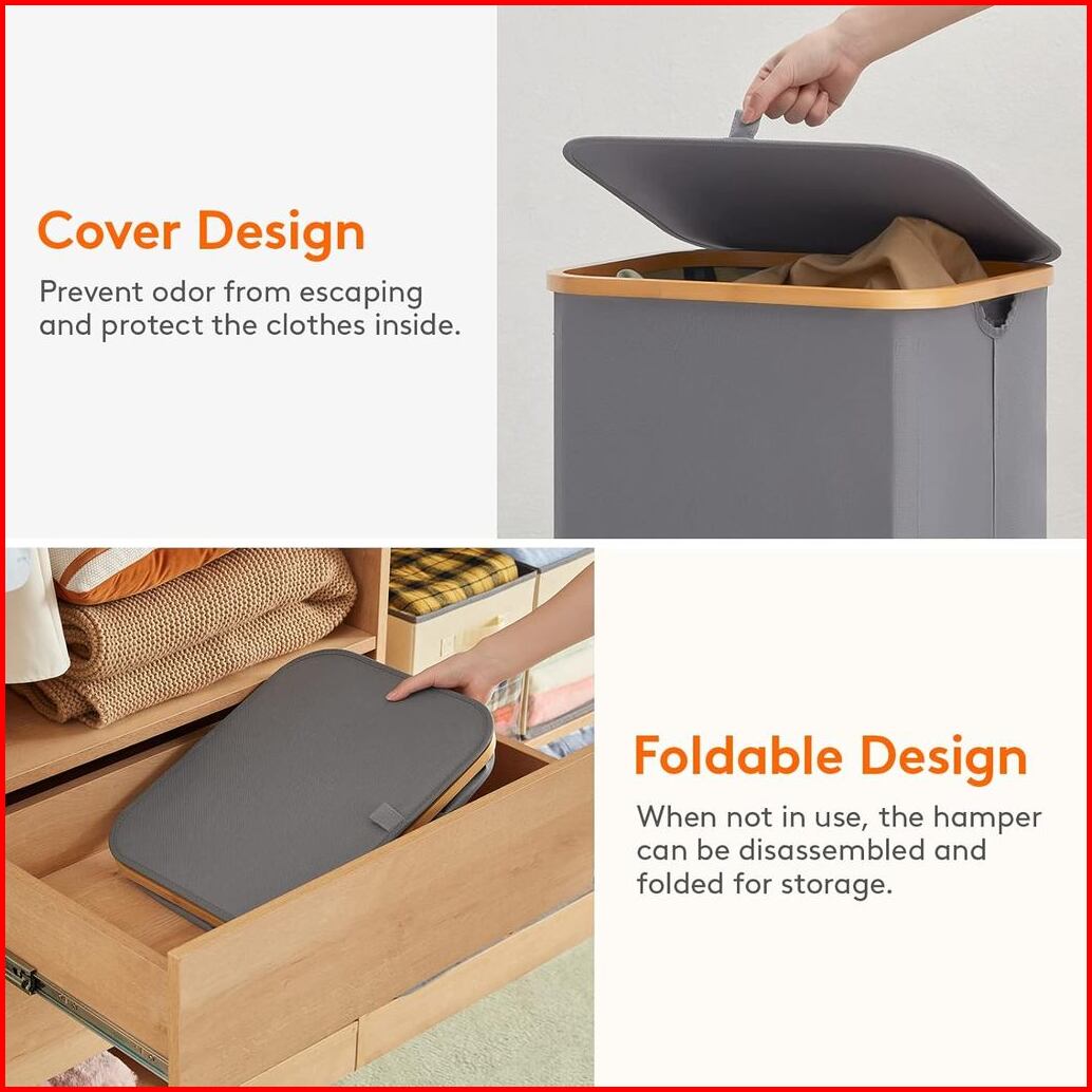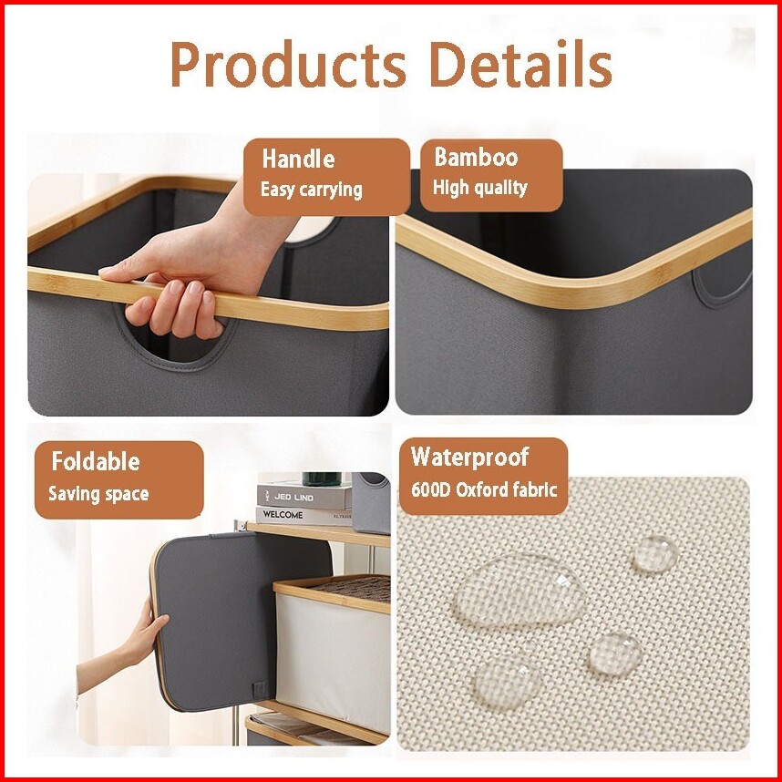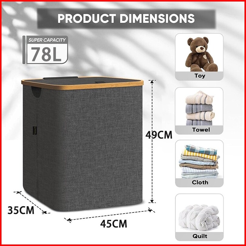 78l Keranjang Baju Kotor Dengan Tutup Keranjang Cucian Dengan Gagang Bambu Tas Cucian Lipat Pakaian Kotor Tempat Penyimp