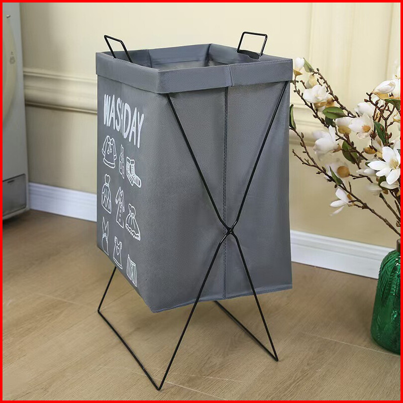 U-living Keranjang Baju Lipat Motif Kapasitas Besar Laundry Basket Dengan Stand Besi Stb005