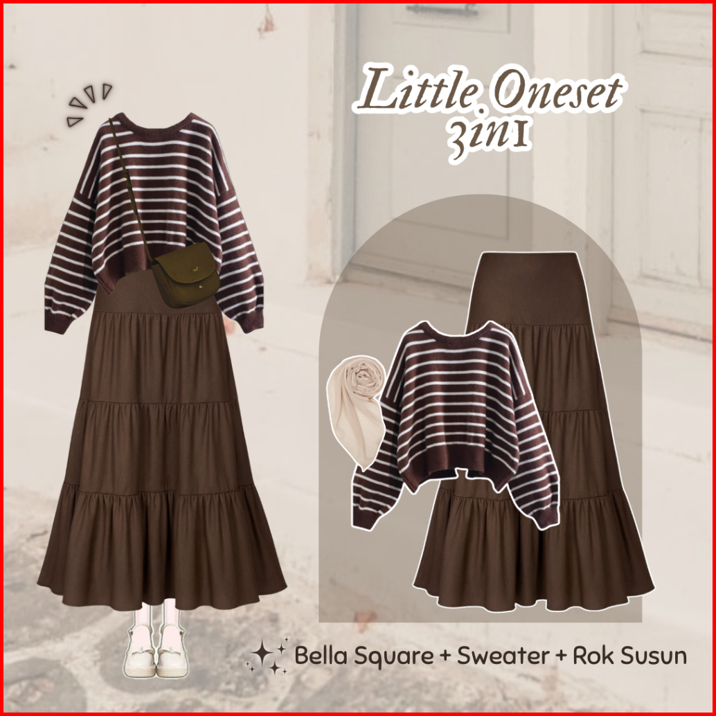 Little Oneset 3in1 Rok Susun Sweater Hijab Bella Square Idea Outfit Feminim Style Ds19