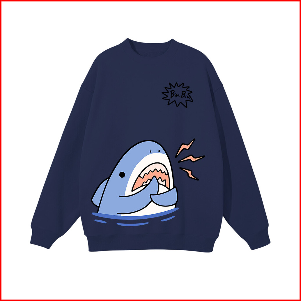 Korean Premium Crewneck Sweater Motif Baby Shark Korean Style Baju Bahan Cotton