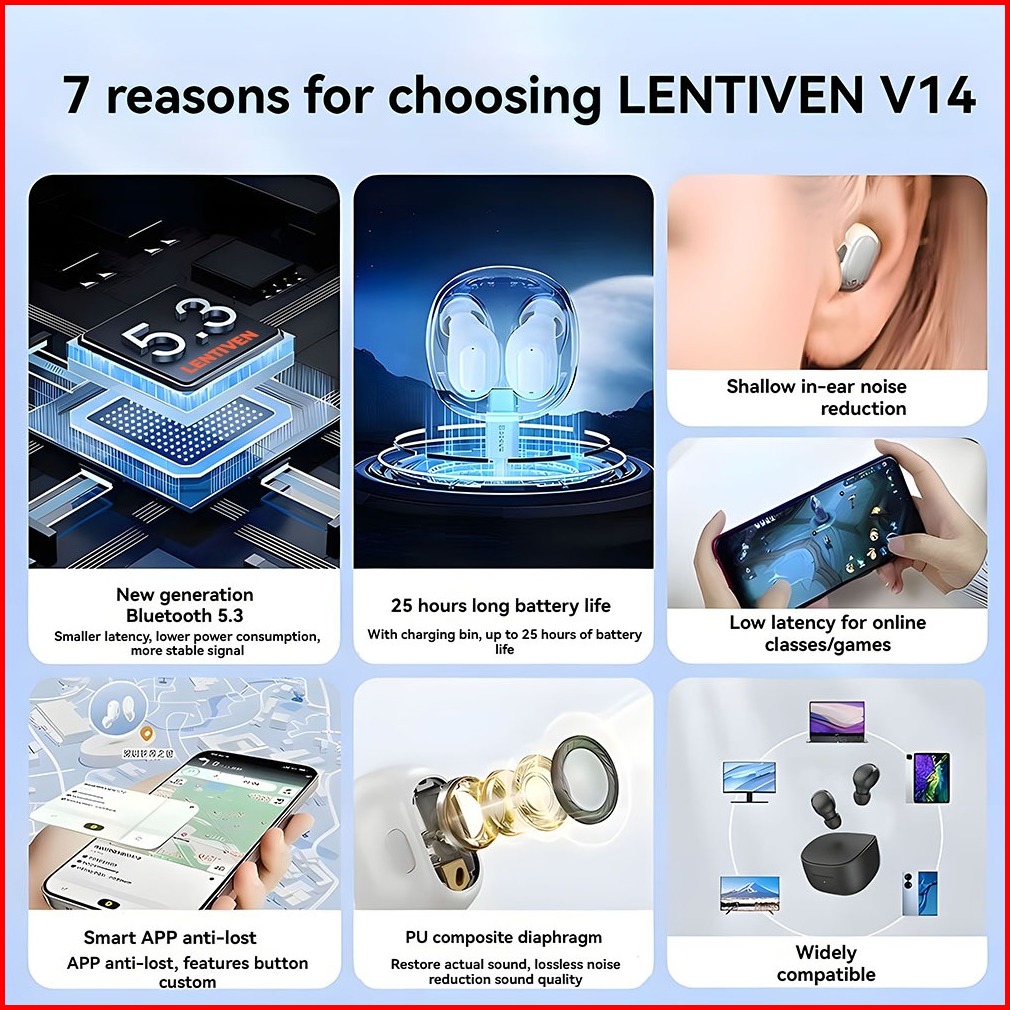 Lj Lentiven Tws Earphones Bluetooth 5.46 6-9h Play V14
