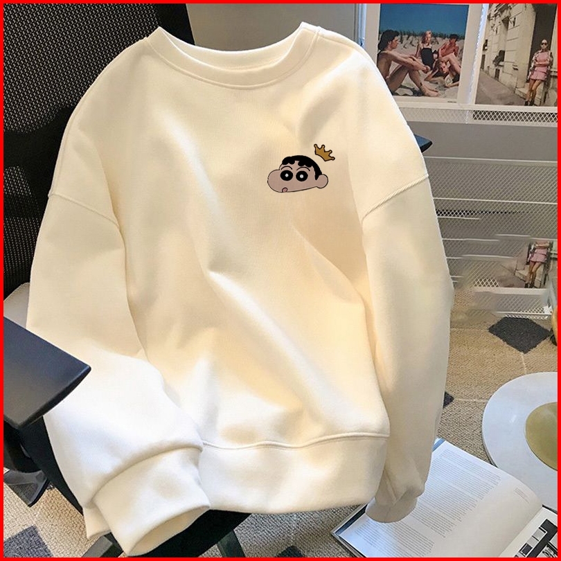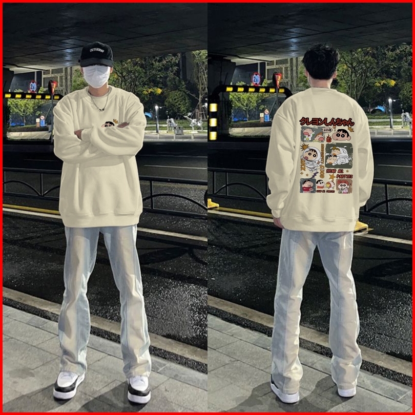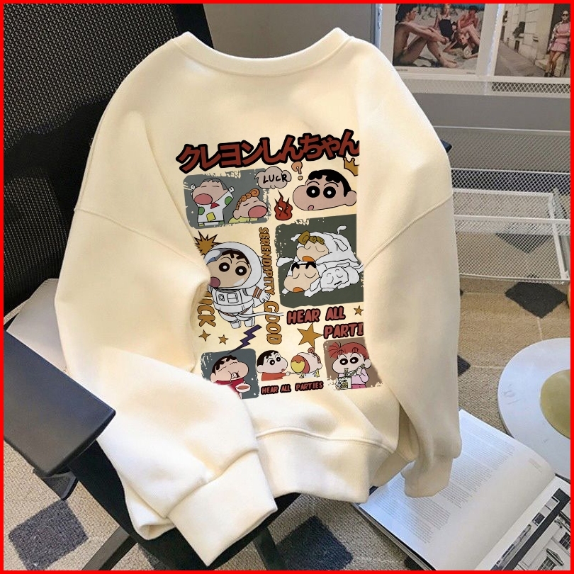 Fastfash Crewneck Sweater Pria Dan Wanita Lengan Panjang Lengan Panjang Oversize Crayon Shin-chan Kartun Astronot Switer