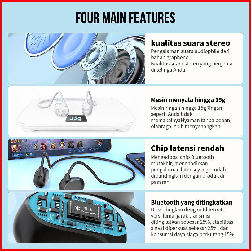 Diskon Gila 80 Off Manu Ows Earphone Bluetooth Open Ear Headset Bluetooth 5.3 Air Conduction Sports Hifi Headphones Tws